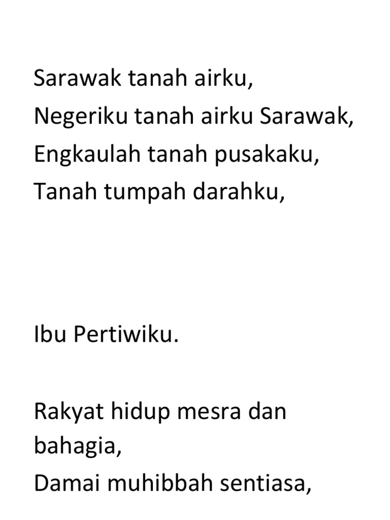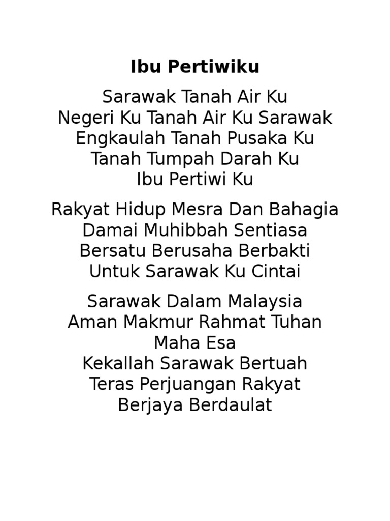 Rakyat hidup mesra dan bahagia damai muhibah sentiasa bersatu, berusaha, berbakti untuk sarawak kucintai. Lirik lagu ibu pertiwi lagu ini adalah salah satu lagu nasiona yang dipopulerkan oleh anak indonesa silahkan selengkapnya baca disini. Sarawak tanah air ku negeri ku tanah air ku sarawak engkaulah tanah pusaka ku tanah tumpah darah ku ibu pertiwi ku. Ibu pertiwiku sarawak national anthem piano instrumental. My motherland) is the official state anthem of sarawak, malaysia.