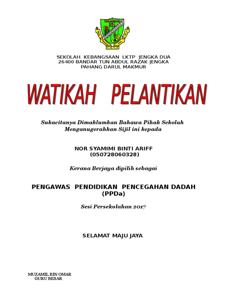 Related : Watikah Pelantikan In English / Contextual translation of watikah pelantikan into english..