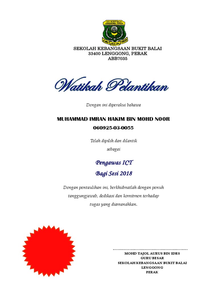 Kota kinabalu:pengerusi perikatan nasional (pn) sabah, datuk seri hajiji noor mengesahkan menerima watikah bagi menghadiri istiadat mengangkat sumpah sebagai ketua. .sk bandar putra, penutup bulan kemerdekaan sk bandar putra, majlis watikah pelantikan pengawas sekolah pengawas pss briged bestari pengawas spbt dan prs skib majlis watikah pelantikan pengawas sekolah, pengawas pss, briged bestari, pengawas spbt dan prs skib. Macmillan, credentials, appointment, handover ceremony, appointment letter. English español deutsch français 日本語 português 한국어. Pengerusi perikatan nasional (pn) sabah, datuk hajiji noor menerima watikah pelantikan sebagai ketua menteri sabah yang baharu daripada istana negeri.