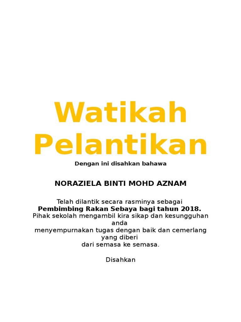 Sekolah kebangsaan duyong melaka watikah pelantikan dengan ini disahkan bahawa dilantik sebagai pengawas bagi tahun 2013 …. Check out other malay translations to the english language Macmillan, credentials, appointment, handover ceremony, appointment letter. Anggaran perbelanjaanbil perkara kuantiti jumlah1 sarapan pagi murid rm 2.50 x 46 org rm 115.002 cenderamata rm 30.00 x 1 rm 30.00 jumlah keseluruhan rm 145.00ulasan. You can create one as well, really easily.get started.